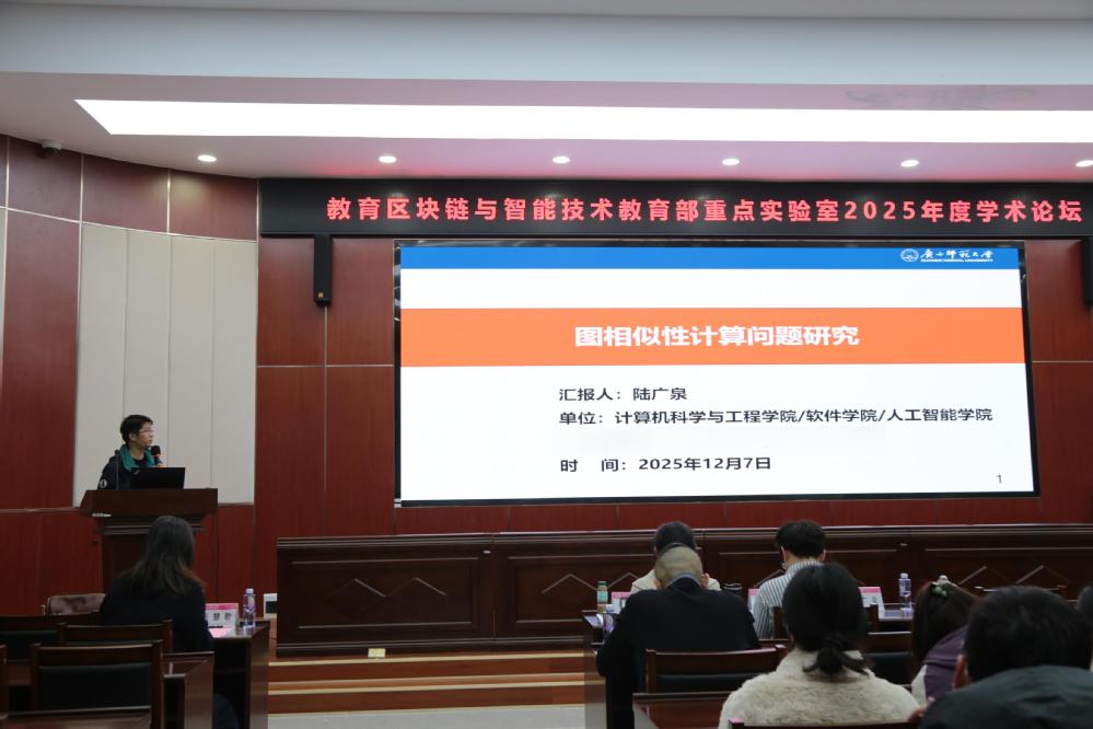 2025年12月7日,教育区块链与智能技术教育部重点实验室2025年度学术论坛在广西师范大学育才校区顺利举行。实验室特邀专家、学院领导班子出席论坛,师生代表近百人参加会议,共同探讨区块链、人工智能与教育融合发展的前沿趋势与创新实践。